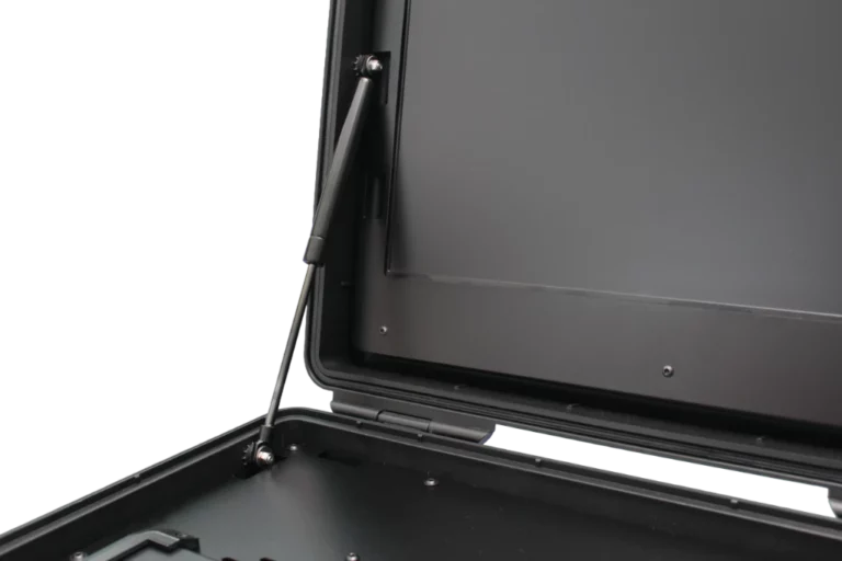 Die integrierte Gasdruckfeder sorgt für ein kontrolliertes Öffnen des Deckels und hält den 18" Monitor während der Produktion sicher in der gewünschten Position. Selbst in hektischen Live-Situationen verhindert dieser Mechanismus ein unbeabsichtigtes Zufallen des Deckels und schützt so sowohl die Hardware als auch deinen Workflow.